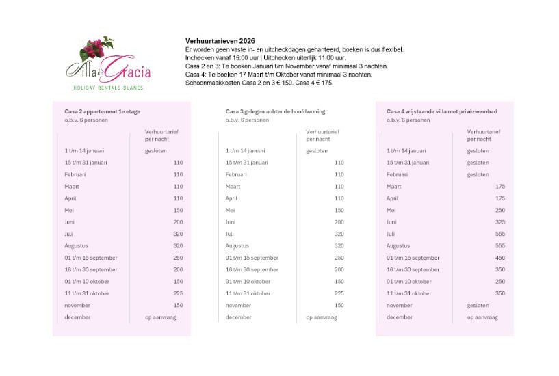 Deze algemene huurvoorwaarden zijn van toepassing op reserveringen en overeenkomsten met betrekking tot Vakantieresort Villa de Gracia en de daarbij behorende vakantiewoningen / appartementen van ‘Villa de Gracia’ staande en gelegen aan Carrrer Veinat Sant Daniel 148 – 209, 08490 Tordera, Barcelona, Spanje.